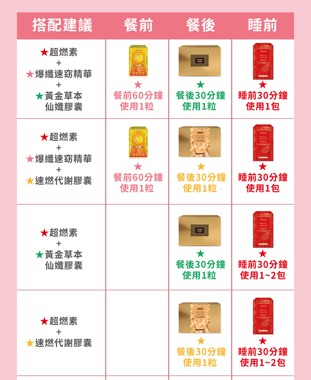 (正常飲食請食1顆;大餐、消夜、油炸速食、油膩外食請食2顆)